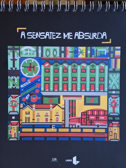 Antes, o texto de apresentação, assinado por Denise Arantes e Lara Luedemann, tomando da poesia de Manoel de Barros a estrofe A SENSATEZ ME ABSURDA, com ela e com a arte de Aurelino, roteiriza a proposta do calendário: